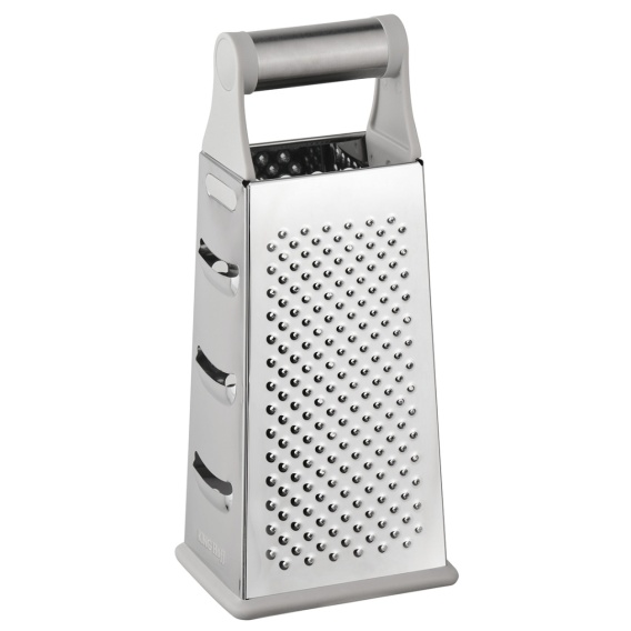 • 4 różne strony tarki – do tarcia grubego, drobnego, ścinania plasterków i krojenia warzyw