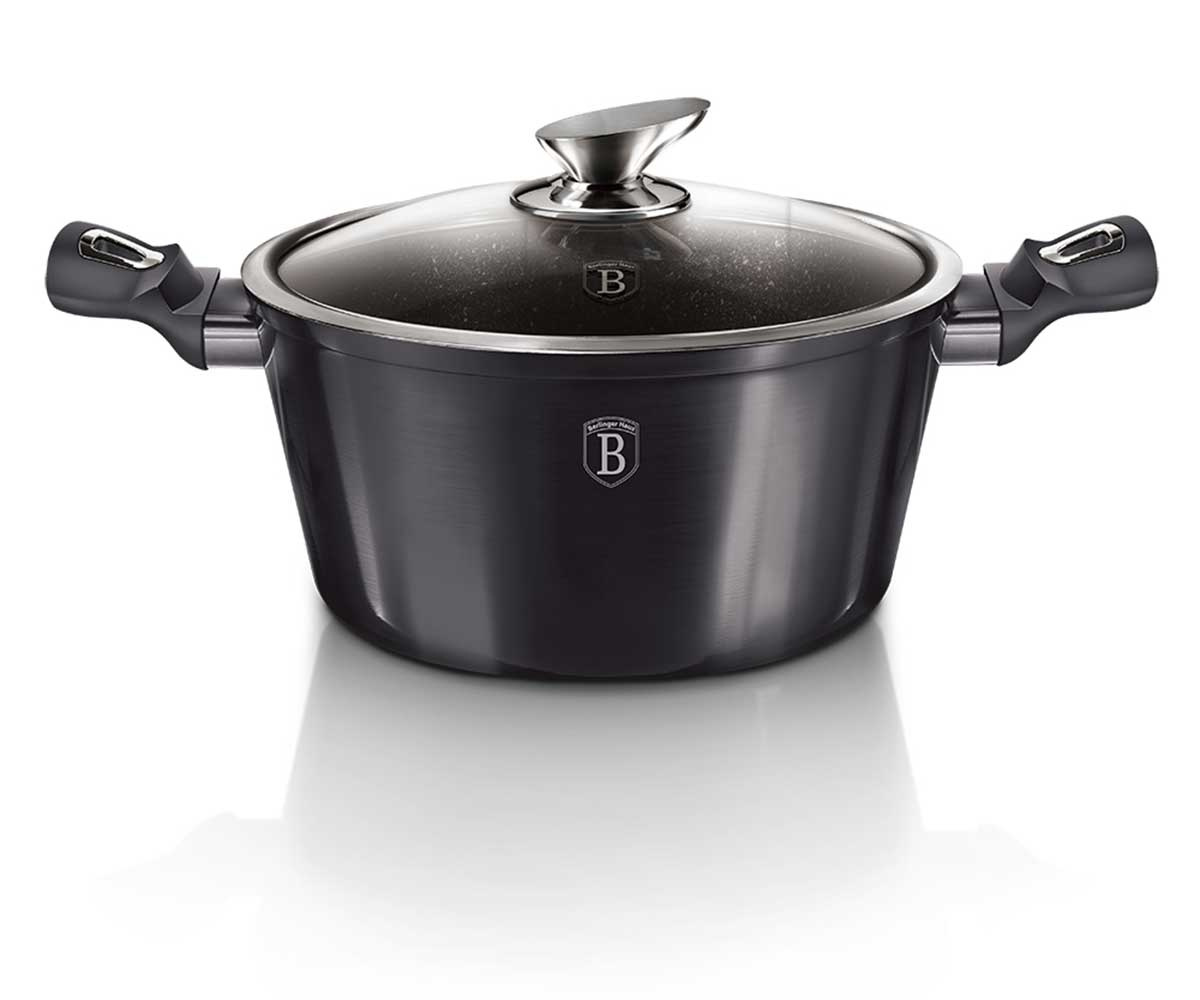 Naczynia z serii CARBON PRO firmy BERLINGER HAUS wykonane są z wysokiej klasy odlewanego aluminium pokrytego wewnątrz potrójną powłoką granitową (marble) o bardzo wysokim współczynniku twardości. Powłoka zewnętrzna w kolorze metalicznym grafitowym. Te atrakcyjne i modne naczynia wyposażone są standardowo w uchwyty typu SOFT TOUCH (silikon handle). Przystosowane do wszystkich rodzajów kuchenek: gazowa, elektryczna, ceramiczna, halogenowa, indukcyjna. System TURBO INDUCTION (bardzo szybko nagrzewają się) pozwala zaoszczędzić nawet 35% energii.