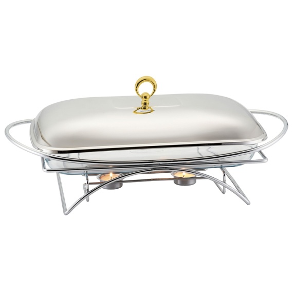 Podgrzewacz do potraw prostokątny ze szkła i stali nierdzewnej, 3 l