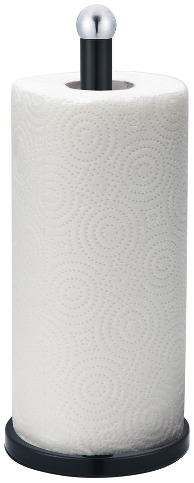 Stojak firmy KINGHOFF na ręczniki papierowe. Wykonany ze stali nierdzewnej lakierowanej proszkowo na kolor czarny. Chromowane dodatki.