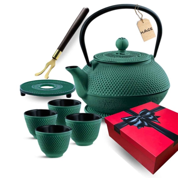 ZAPARZACZ ŻELIWNY DZBANEK ZIELONY 900ml Z FILTREM i FILIŻANKAMI PREZENT