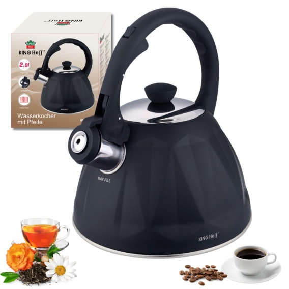 CZAJNIK 2L Z GWIZDKIEM KINGHOFF KH-1997 CZARNY MAT