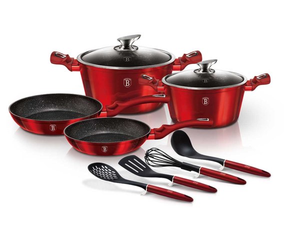 Garnki i akcesoria z serii METALLIC firmy BERLINGERHAUS wykonane są z wysokiej klasy kutego aluminium pokrytego wewnątrz potrójną powłoką granitową (marble) o bardzo wysokim współczynniku twardości. Powłoka zewnętrzna występuje w kilku wersjach kolorystycznych o charakterystycznym metalicznym połysku. Te atrakcyjne i modne naczynia wyposażone są standardowo w uchwyty typu SOFT TOUCH (silikon handle). Przystosowane do wszystkich rodzajów kuchenek: gazowa, elektryczna, ceramiczna, halogenowa, indukcyjna. System TURBO INDUCTION (bardzo szybko nagrzewają się) pozwala zaoszczędzić nawet 35% energii.