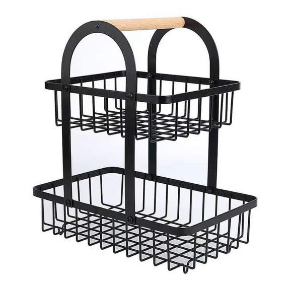 Koszyk piętrowy na owoce wykonany z prętów stalowych malowanych proszkowo. Może posłużyć do przechowywania owoców lub warzyw.  Koszyk fantastycznie prezentuje się zarówno na kuchennym blacie jak i na eleganckim stole. Idealnie komponuje się z wnętrzami urządzonymi w stylu loft. Drewniana rączka do przenoszenia.