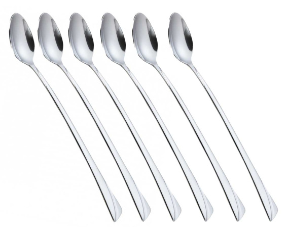 6 łyżeczek koktajlowych ze stali nierdzewnej polerowanej na wysoki połysk.