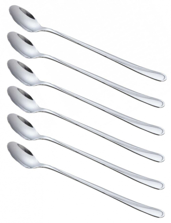 6 łyżeczek koktajlowych ze stali nierdzewnej polerowanej na wysoki połysk.