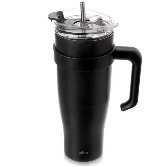 • STALOWY KUBEK TERMICZNY TERMOS 1200ml Z RĄCZKĄ I SŁOMKĄ ORION 112284 CZARNY