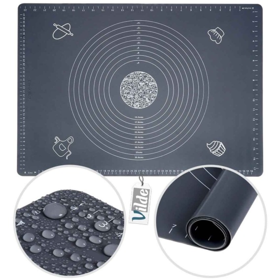 Stolnica wykonana z odpornego silikonu. Świetnie przylega do blatu lub stołu. Stolnicę można wygodnie zwinąć, więc nie zajmuje dużo miejsca podczas przechowywania. Mata jest idealna do wyrabiania ciast, ciasteczek, pizzy. Całkowicie bezpieczna dla zdrowia i neutralna dla żywności. Do wykrawania nie należy używać ostrych noży, może to uszkodzić stolnice. Oryginalny produkt marki Vilde. Wyprodukowano zgodnie z europejskimi standardami.