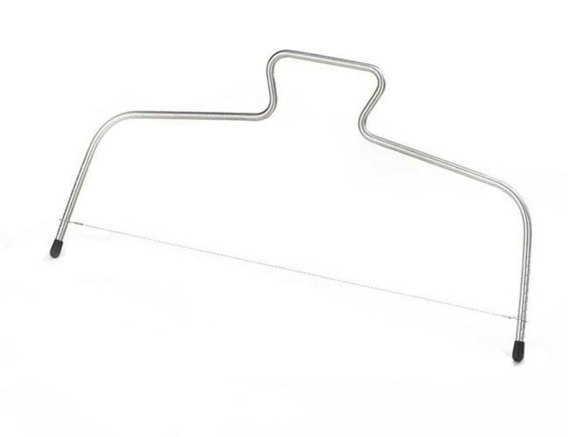 Stalowa struna do krojenia biszkoptu na tort. Kroić można z użyciem specjalnej formy do przycinania lub bezpośrednio samo ciasto.