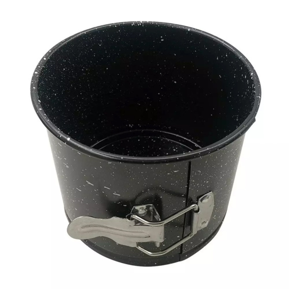 Okrągła tortownica z odpinanym pierścieniem do pieczenia tortów piętrowym firmy KINGHOFF. Dzięki możliwość rozpięcia pierścienia mamy możliwość łatwego wyjęcia z formy naszego wypieku. Tortownica pokryta jest powłoką marmurkową zapobiegającą przywieraniu wypieków.Tortownice o średnicach od 8 do 28cm (co 2 cm) umożliwiają pieczenie warstw o wybranym rozmiarze do zrobienia tortu piętrowego.