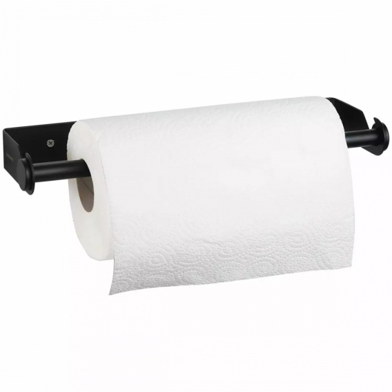 Elegancki uchwyt na ręcznik lub folię, z możliwością przyklejenia do powierzchni lub montażu na wkręty.