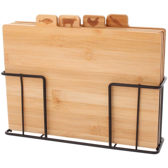 Zestaw desek do krojenia łączy w sobie 4 bambusowe  deski do różnych rodzajów produktów. Pozwala to uniknąć sytuacji, w której krojone potrawy przejmują smak innych artykułów spożywczych.