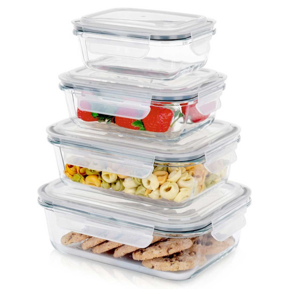 • ZESTAW SZKLANYCH POJEMNIKÓW NA ŻYWNOŚĆ Z POKRYWAMI I USZCZELKAMI 229151